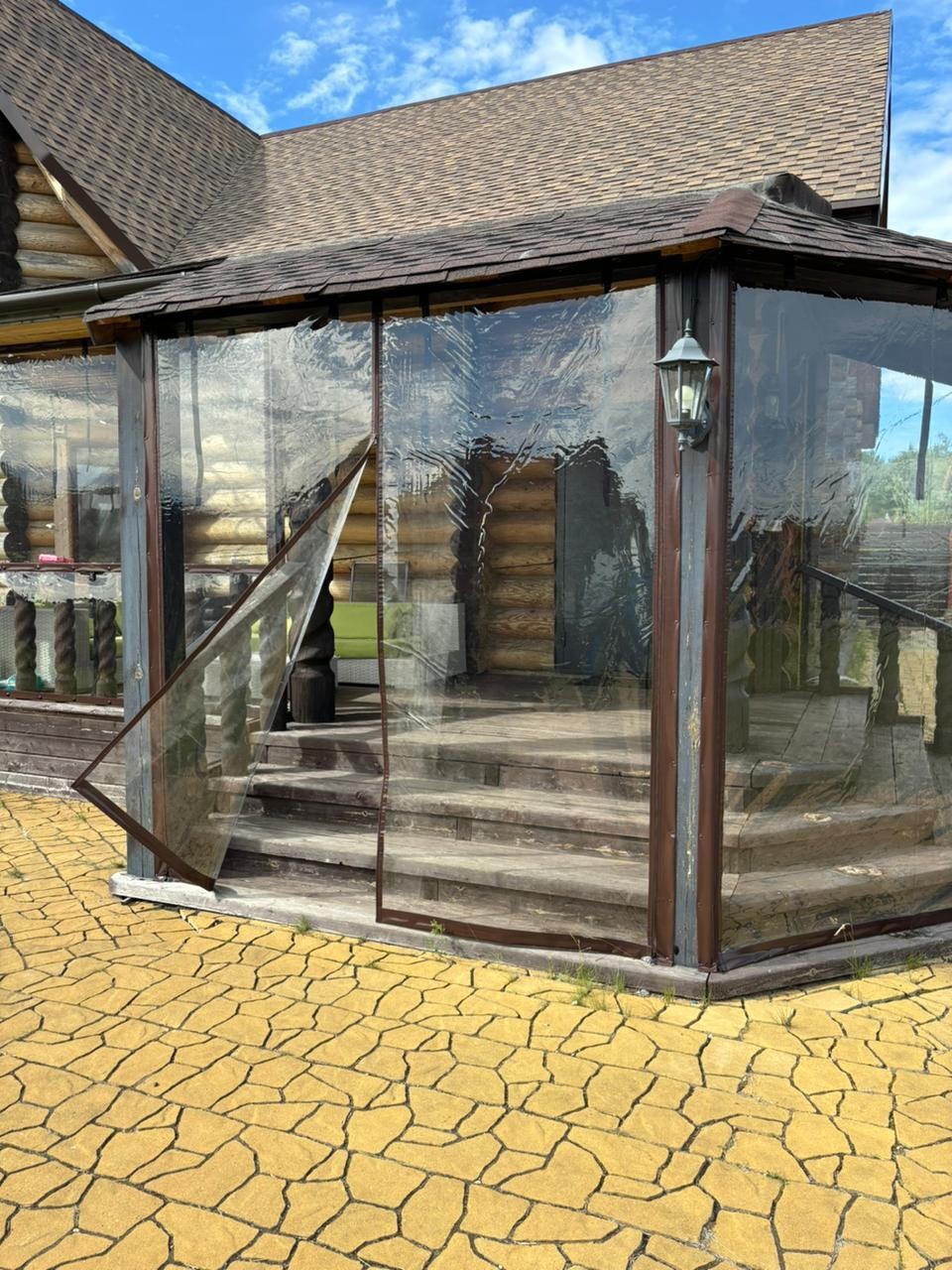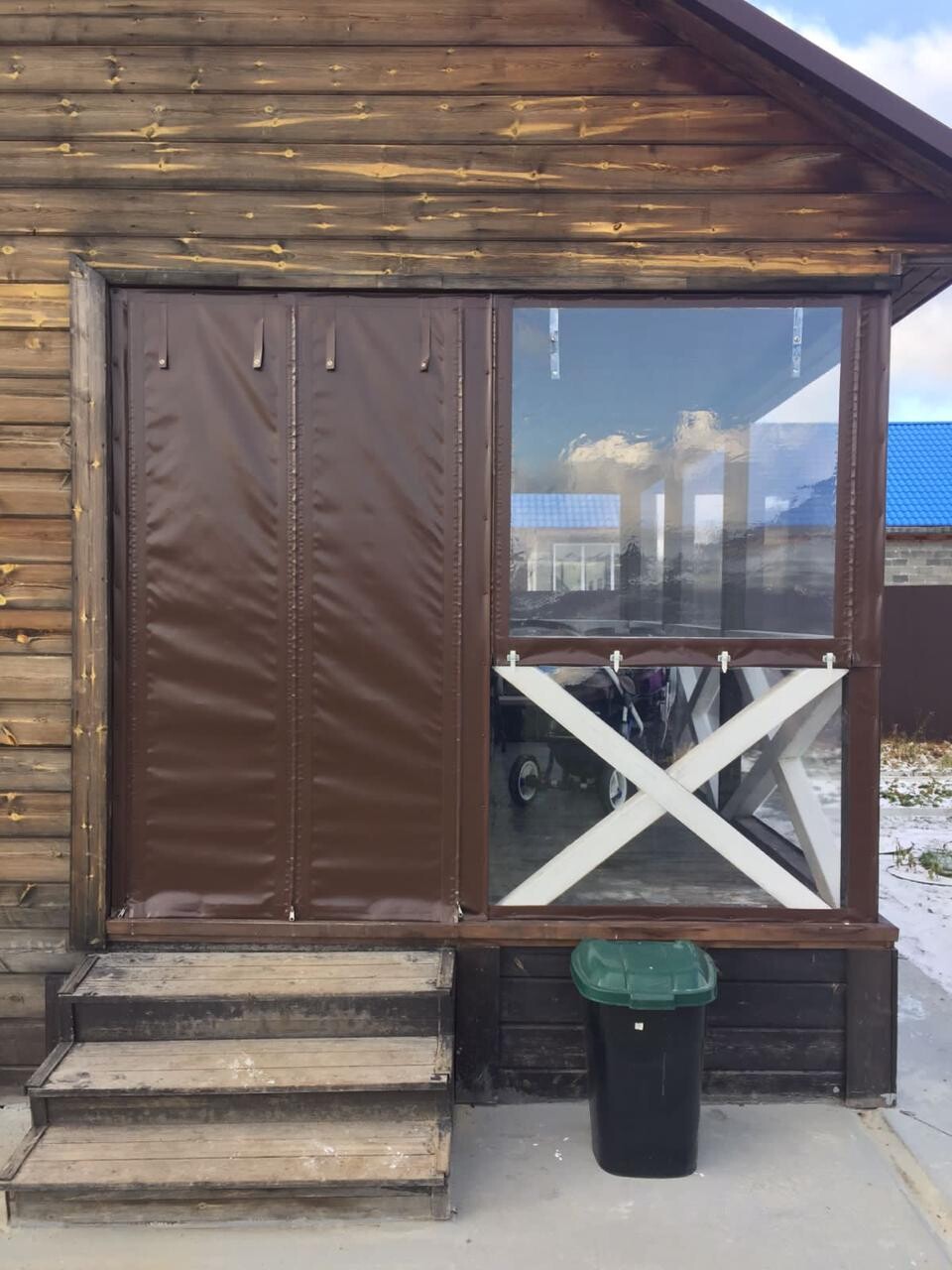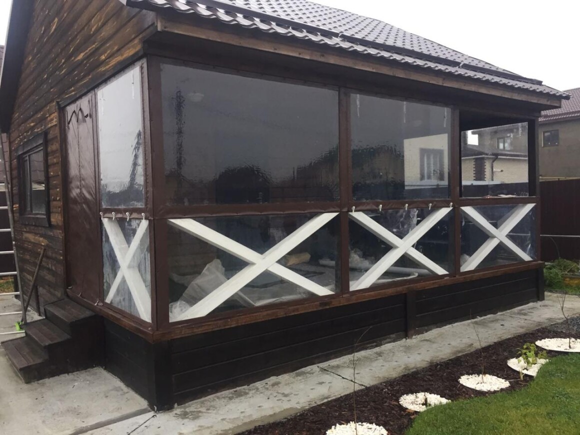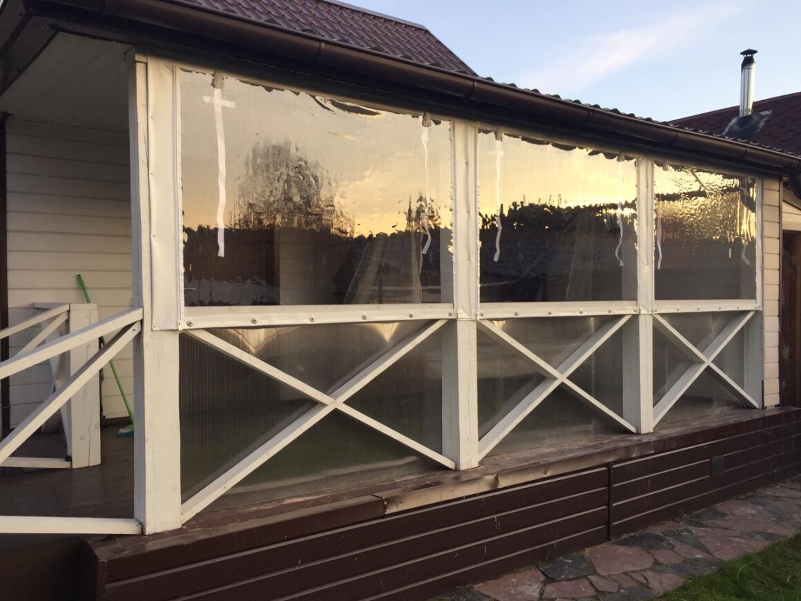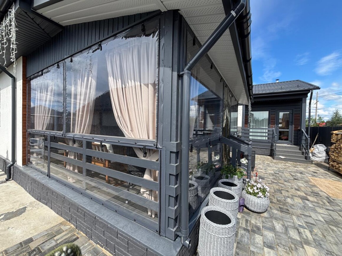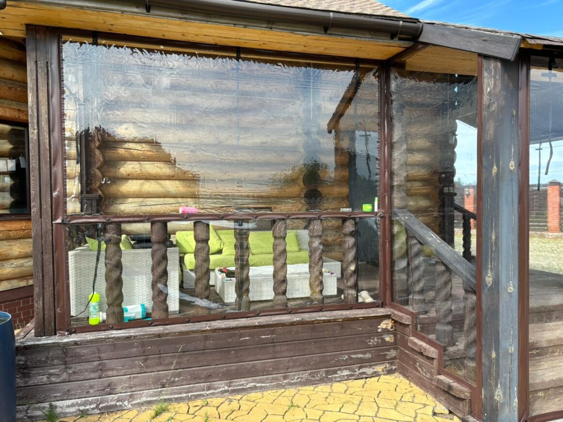 Это практичная и недорогая альтернатива остеклению, состоящая из плотной ПВХ-пленки, окантованной по периметру армированной тентовой тканью