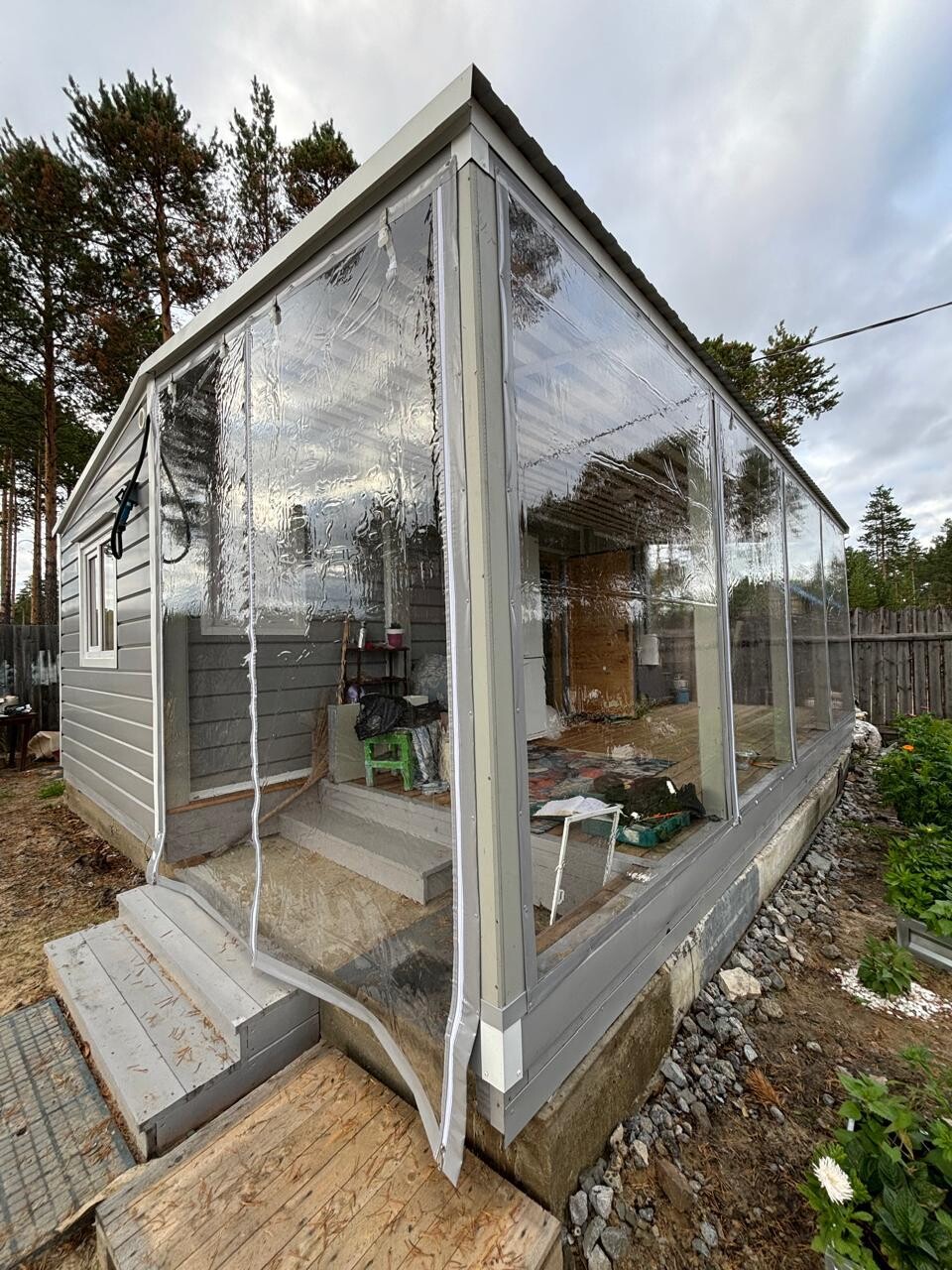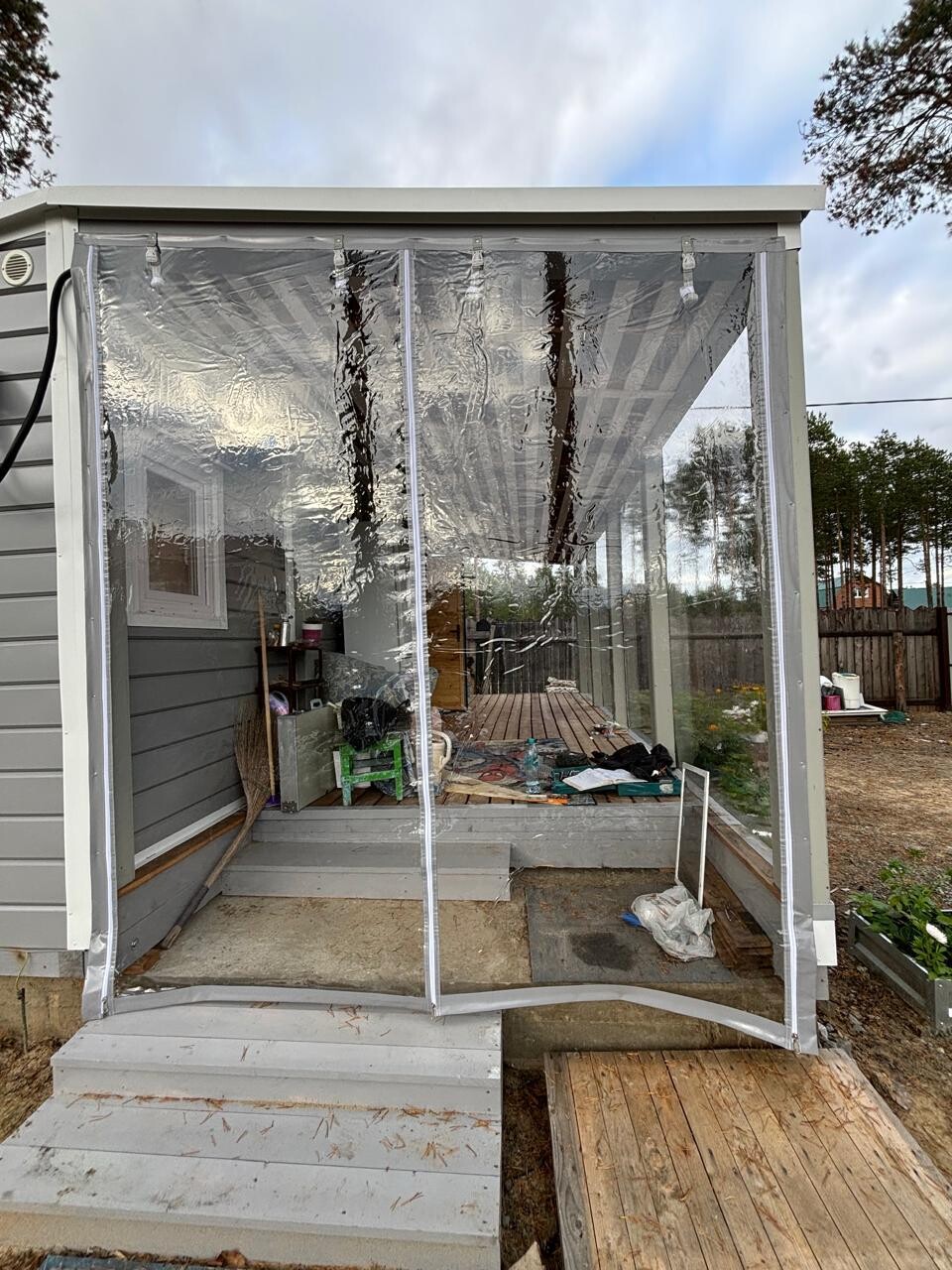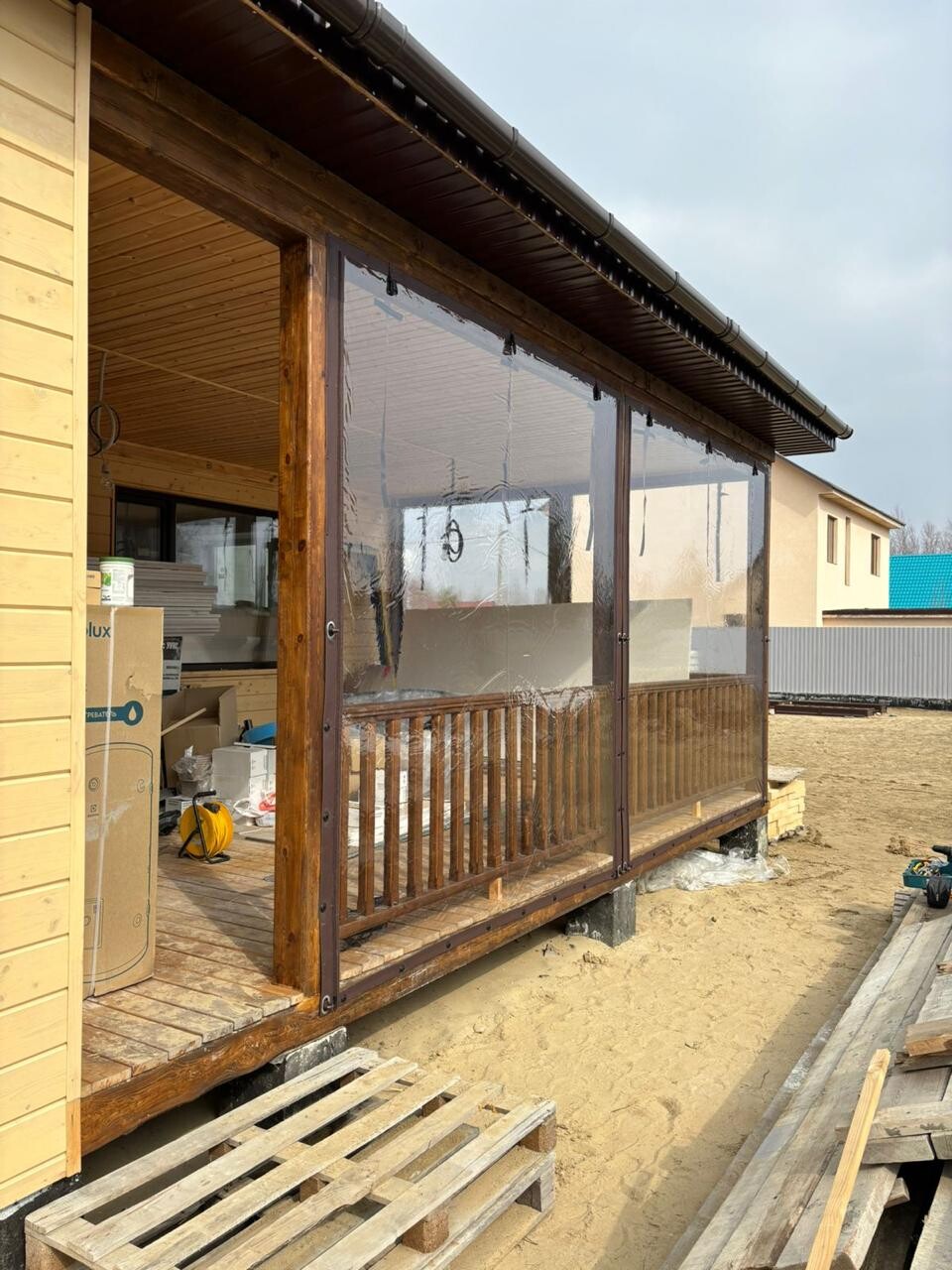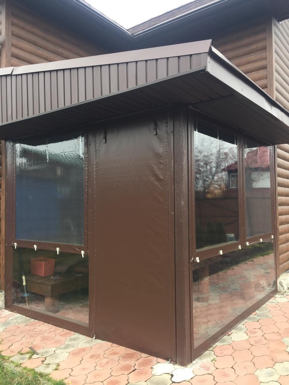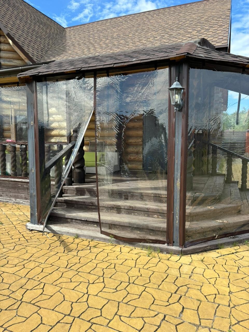 Это практичная и недорогая альтернатива остеклению, состоящая из плотной ПВХ-пленки, окантованной по периметру армированной тентовой тканью